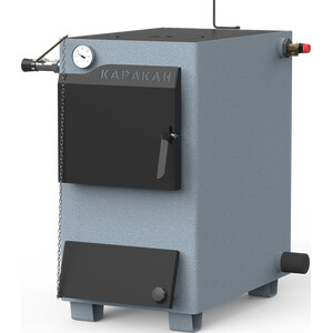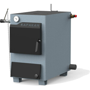 Отопительный котел Каракан 20ТПЭ-3 работает на дровах и угле. Глубина топки 60 см. Объем теплоносителя в котле составляет 80 л. Оборудован варочной плитой с двумя конфорками. Переходник на круглый дымоход 150 мм в комплекте. Дополнительно можно установить ТЭН и регулятор тяги. Материал топки сталь 3 мм. Рассчитан на давление в системе отопления до 3 бар. Гарантия производителя 5 лет!